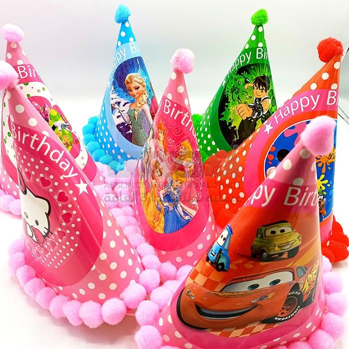 Pălării Party pentru Copii cu Personaje Disney – 21 cm, Decorate cu Pompoane,En-gros