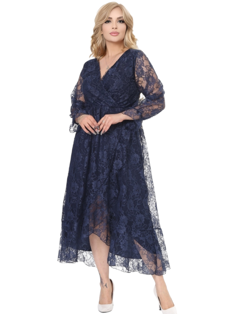 Rochie de ocazie bleumarin din dantela cu spate gol