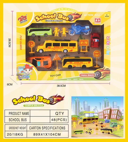 Set masini, engros, School Bus, 38,5x6x28,5 cm